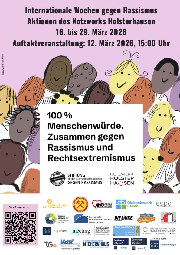 Vom 16. bis 29. März 2026 finden wieder bundesweit die Internationalen Wochen gegen Rassismus statt. Das Ganze steht diesmal unter dem Motto „100% Menschenwürde. Zusammen gegen Rassismus und Rechtsextremismus“