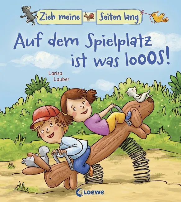 Ein „Zieh meine Seiten lang“ Bilderbuch für die ganz Kleinen. Durch das herausziehen der Seiten entstehen immer noch besondere Veränderungen der Spielplatzsituation, da hat die Rutschbahn einen Looping oder Bär und Tiger schaukeln mit.