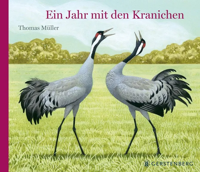 Schon auf dem Cover ist ein Kranichpaar zu sehen. Die Vögel wirken, dank der Lackfarbe, besonders dynamisch. Die Figuren des typischen Paarungstanzes sind so gut erkennbar, dass man die Trompetentöne zu hören glaubt. Das erste Bild zeigt die Vögel im Frühjahr, wenn sie im Morgennebel ihre Flügel schlagen. Der kurze Text erklärt ihre Bewegung mit Tanzen.